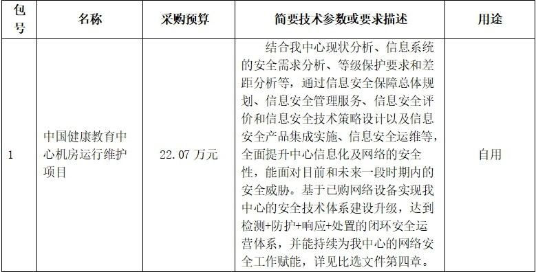 中国健康教育中心机房运行维护项目比选采购公告