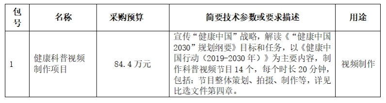 中国健康教育中心健康科普视频制作项目比选采购公告
