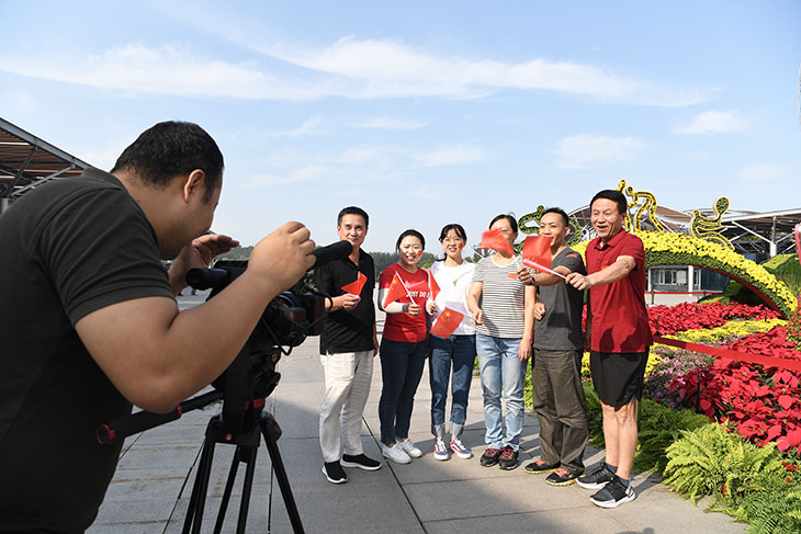 活动首先组织了“祝福祖国”微视频拍摄,广场上舞动着鲜艳的国旗,飘荡着“祝愿祖国繁荣富强”、“祝祖国母亲生日快乐”、“我爱你中国”等祝愿心声,现场气氛热烈,大家情绪高昂,表达了中心上下对新时代祖国的赞美和良好祝愿。