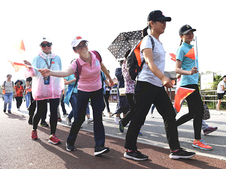 伴随着金秋的万里晴空、和煦微风和清甜花香,全体人员迈着有力步伐,神采奕奕地投入到健步走活动中,大家欢声笑语,相互鼓励,跳跃的红旗和灿烂的笑容却成为健步走道上久久不能散去的亮丽风景。