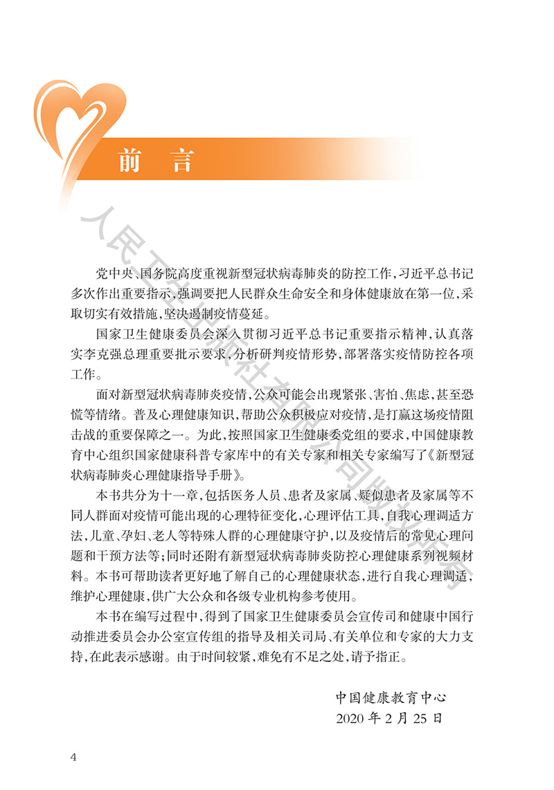 《新型冠状病毒肺炎心理健康指导手册》正式出版