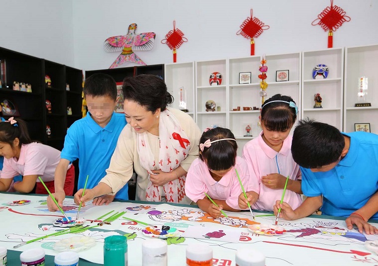2006年,彭丽媛与受艾滋病影响的孩子们受邀参加“中国的温暖——关注艾滋病致孤儿童,奉献爱心公益行动”大型公益文艺晚会,他们登台共同演唱了公益歌曲《爱你的人》,“人间有泪就会有关怀……爱你的人就叫红丝带”,随着国家“四免一关怀”政策逐步落实,感染儿童得到积极有效救治,受艾滋病影响儿童的生活境遇也越来越受到社会关注。
