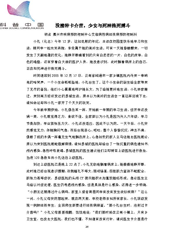 身边的结核病故事——没接种卡介苗,少女与死神殊死搏斗