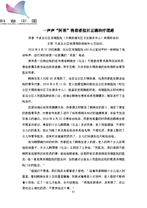 身边的结核病故事——一声声“阿爸”将患者拉回正确治疗道路