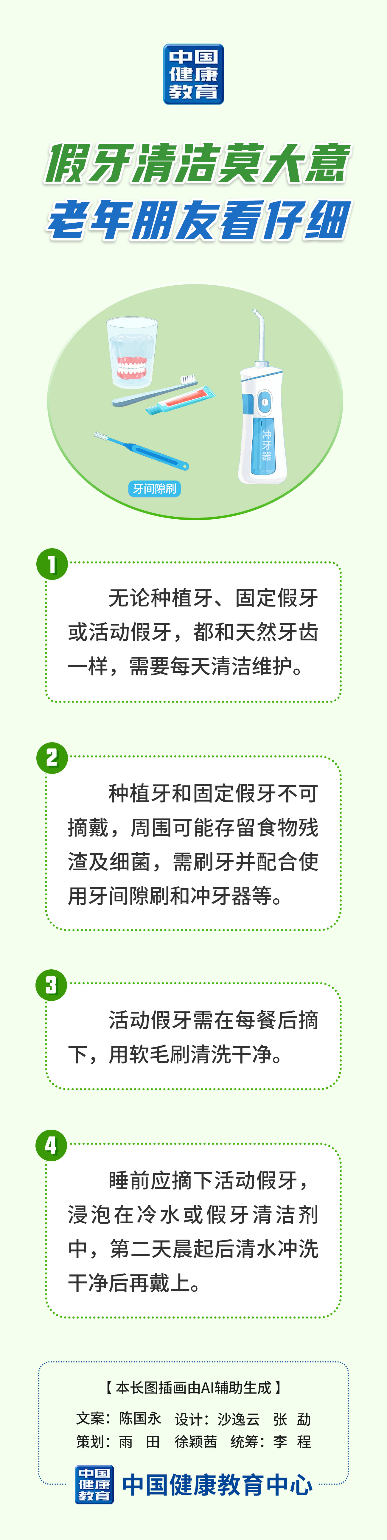 科普长图 | 假牙清洁莫大意 老年朋友看仔细