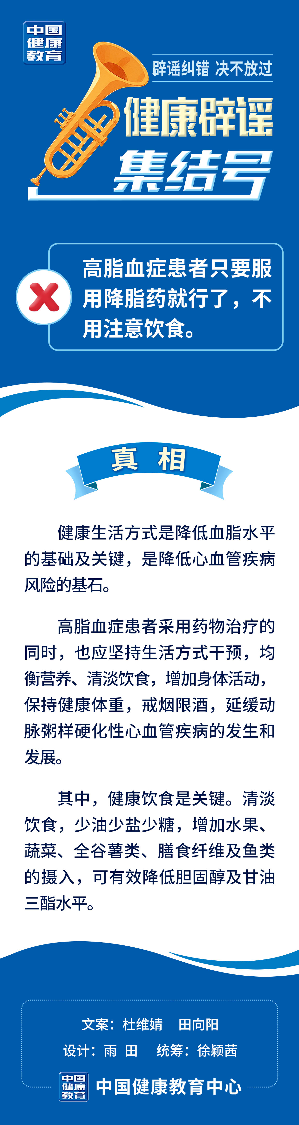 健康辟谣集结号 | 高脂血症患者只要服用降脂药就行了,不用注意饮食